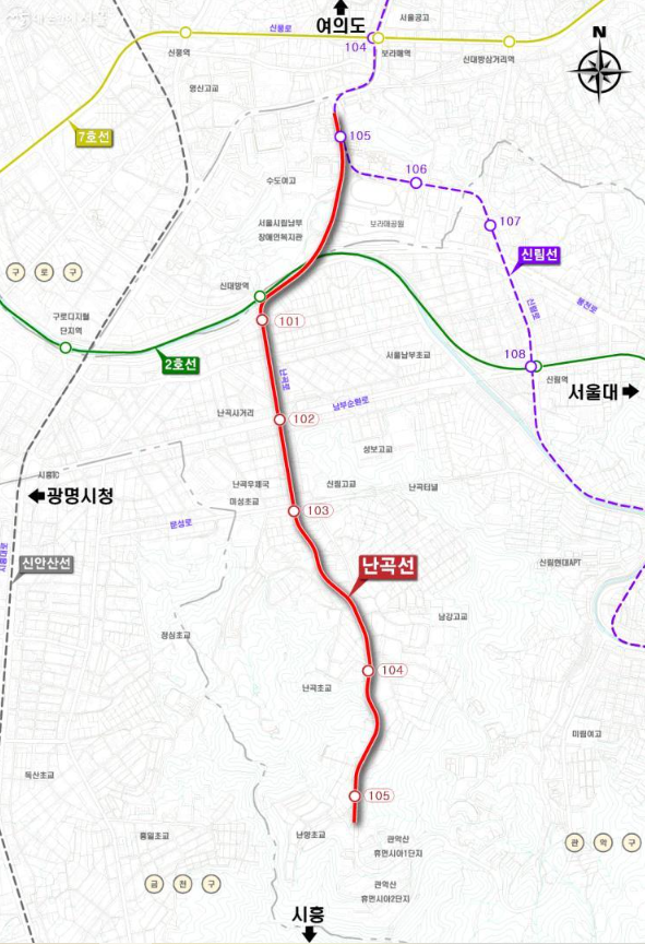 향후 신림선 보라매공원 역에서 난곡선이 분기될 예정이죠