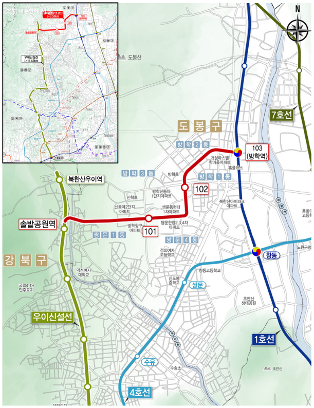1호선 방학역에 닿게 하는 사업이 바로 우이신설 연장선!