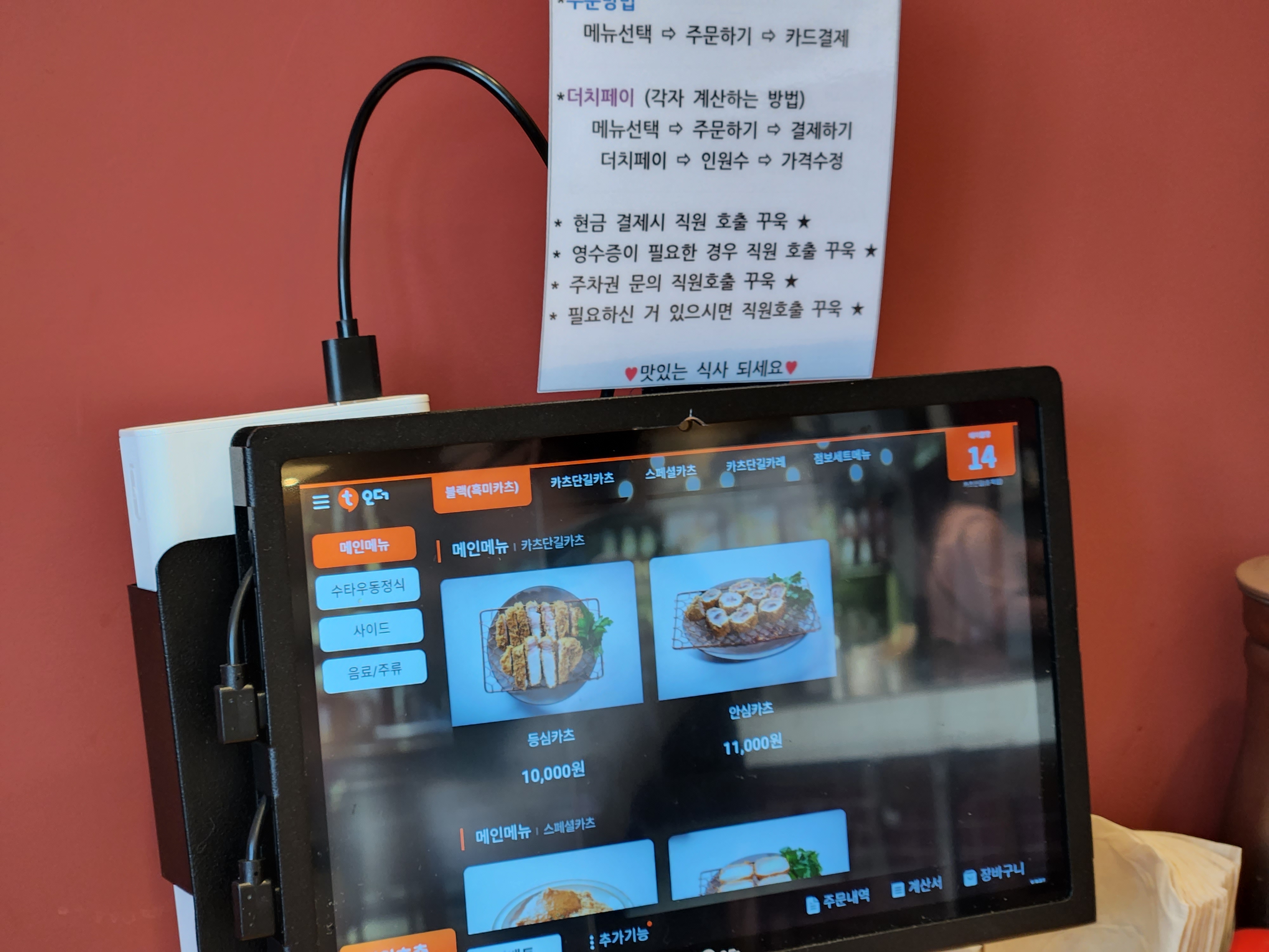 주문은 자리별로 키오스크를 이용해서 주문하는데
