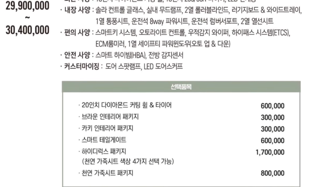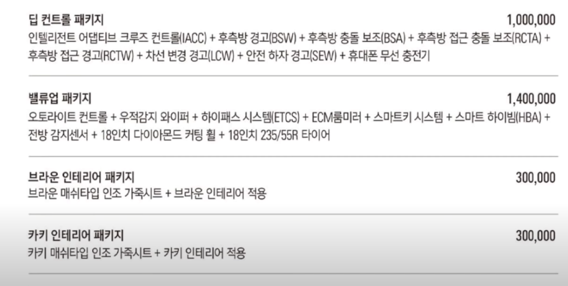 이 세가지는 현대 기아에서는 거의 기본 옵션으로 진행되는데